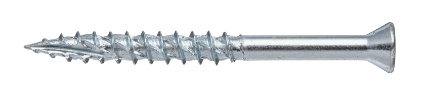 GOLVSKRUV FÖR TRÄREGEL Vass spets och gängor anpassade för förankring i trä. Gängorna griper omedelbart och drar in skruven i trägolvet, samtidigt som huvudet sjunker in av sig självt. Skruvens unika idragningsegenskaper har uppnåtts genom att förse skruven med en skärande borrspets, samt med snedställda och längsgående skär mellan gängorna.