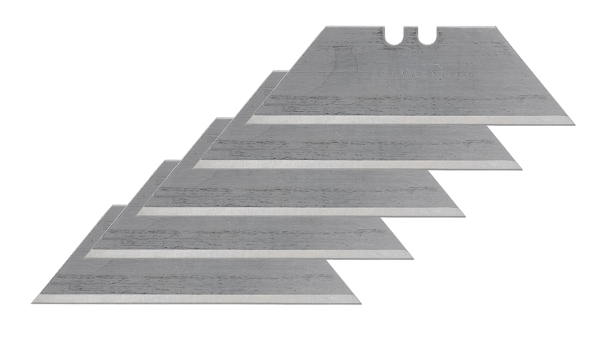 1992 Knivblad utan hål 62mm - 5 st Det ursprungliga och bästa bladet för de flesta ändamål. Bladen passar alla vanliga Stanley-knivar. Kan levereras i enheter om 5 på ett kort, 10 enheter i en dispenser eller 100 enheter i bulk. Perfekt för mattor, vinyl och andra material som kräver ett styvare och starkare blad. Lång modell för alla typer av skäruppgifter. Stort, mycket slitstarkt och vändbart trapezoidblad. Trapezoidblad med rundade ändar för minskad skaderisk.