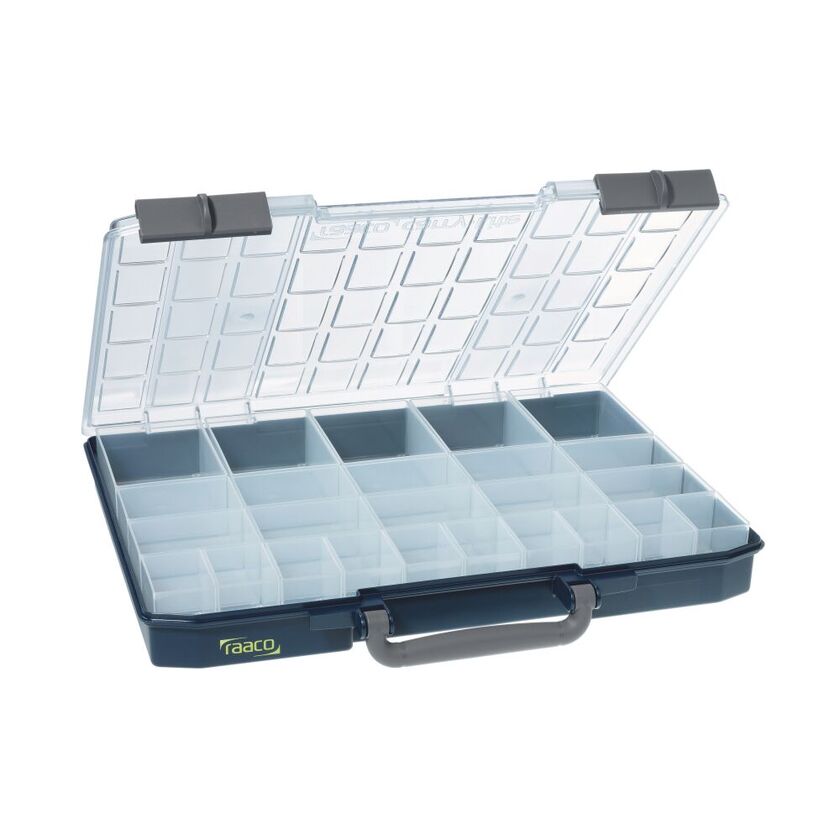 Raaco Carry-Lite 55 5x10 25-2. Carry-Lite med 25 insatser. Försedd med 2 skjutlås och handtag. Tillverkad av polypropylen (PP) och polykarbonat (PC). Färg: Mörkblå med transparant lock. Raaco Carry-Lite 55 5x10 25-2. Carry-Lite med 25 insatser. Försedd med 2 skjutlås och handtag. Tillverkad av polypropylen (PP) och polykarbonat (PC). Färg: Mörkblå med transparant lock.